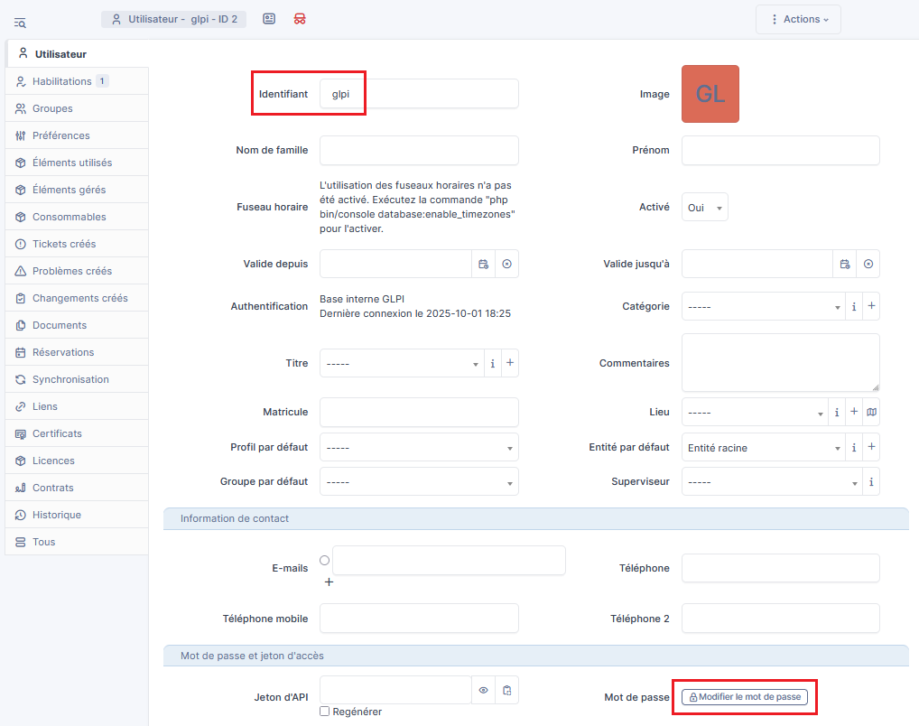 Info + : Pour plus d’informations sur GLPI, consulter l’article Introduction au logiciel GLPI |