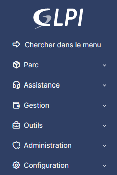 Les différents menus latéraux vous permettront par exemples de gérer votre parc, vos tickets d’incidents, de centraliser vos contrats, fournisseurs ou autres, de gérer les projets du SI et d’administrer GLPI.