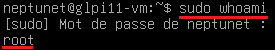 Déconnectez votre utilisateur et reconnectez le pour appliquer les modifications. Pour vérifier rapidement, saisissez la commande « sudo whoami » suivi du mot de passe de votre utilisateur. Si cette commande retourne « root », c’est que c’est fonctionnel.